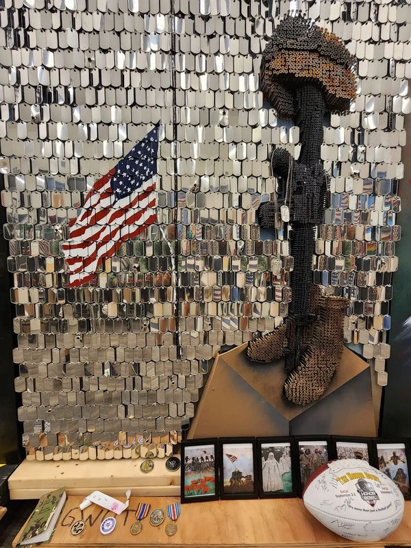 "This moment inspired me to create a War Memorial for Veterans so they wouldn't have to travel as far or were/are unable to make the trip to D.C. The concept would replicate the war memorials that are in D.C. This concept would contain seven panels, each 5 (h) x 4 (W), which when assembled, together, would form a Wall of five feet in height and twenty-eight feet in length. The panels would depict World War I and Il, Korean War, Vietnam Conflict, Global War on Terrorism (GWOT), Unsung Heroes, and Funeral Honors."
